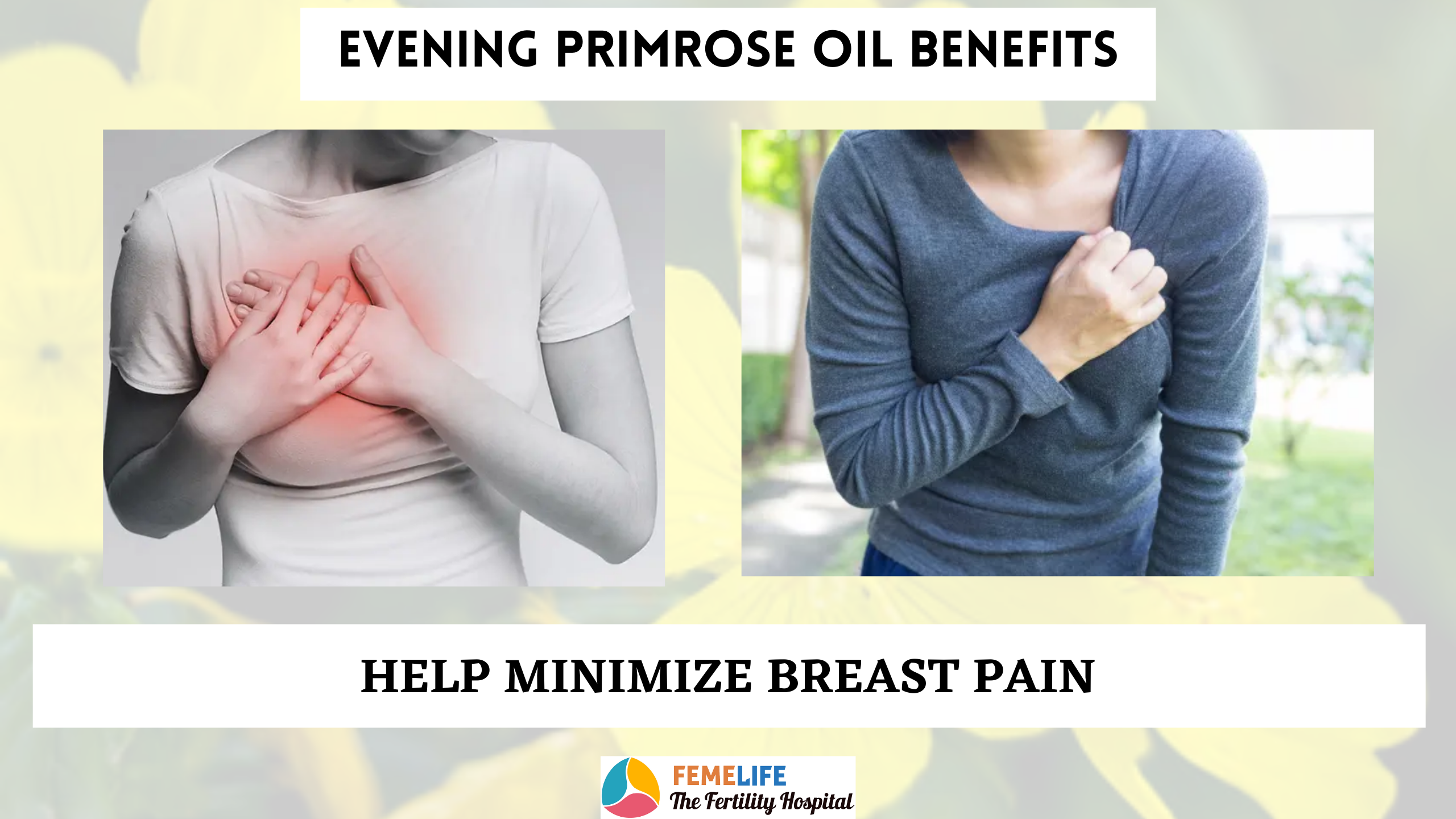 Evening primrose oil has been demonstrated in double-blind studies to alleviate breast discomfort symptoms. Evening primrose oil includes polyunsaturated fatty acids, which are thought to be beneficial to breast health.